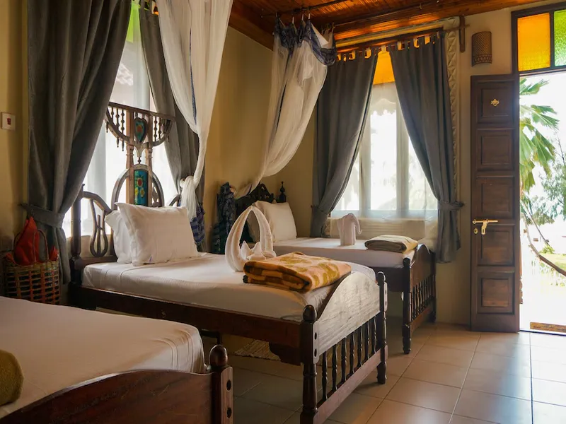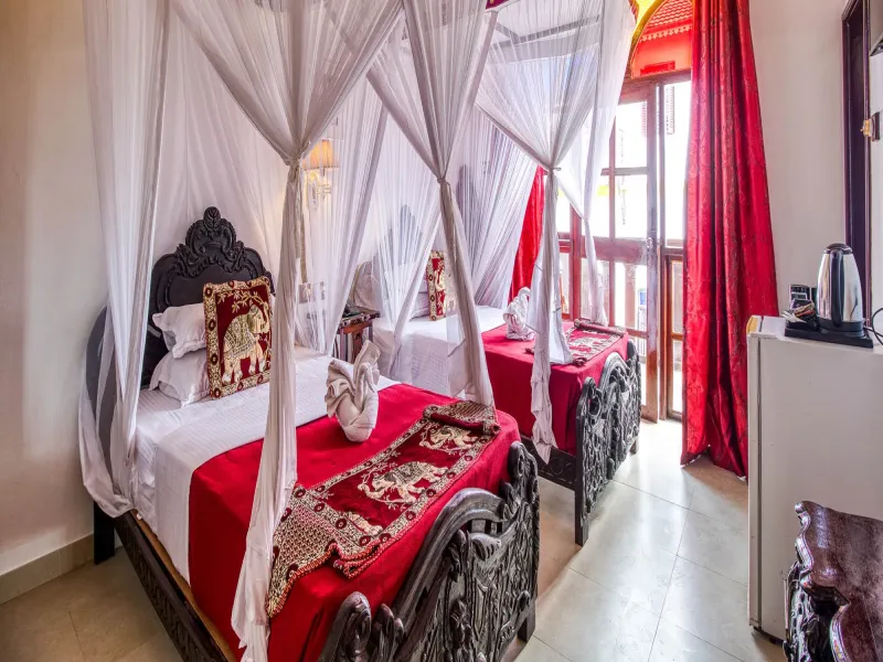 Explore historic Stone Town with a guided tour. Wander through narrow streets lined with Swahili-Omani architecture, admire carved doors and balconies, and visit churches and mosques that reflect Zanzibar's diverse heritage. Later, transfer to your beach hotel